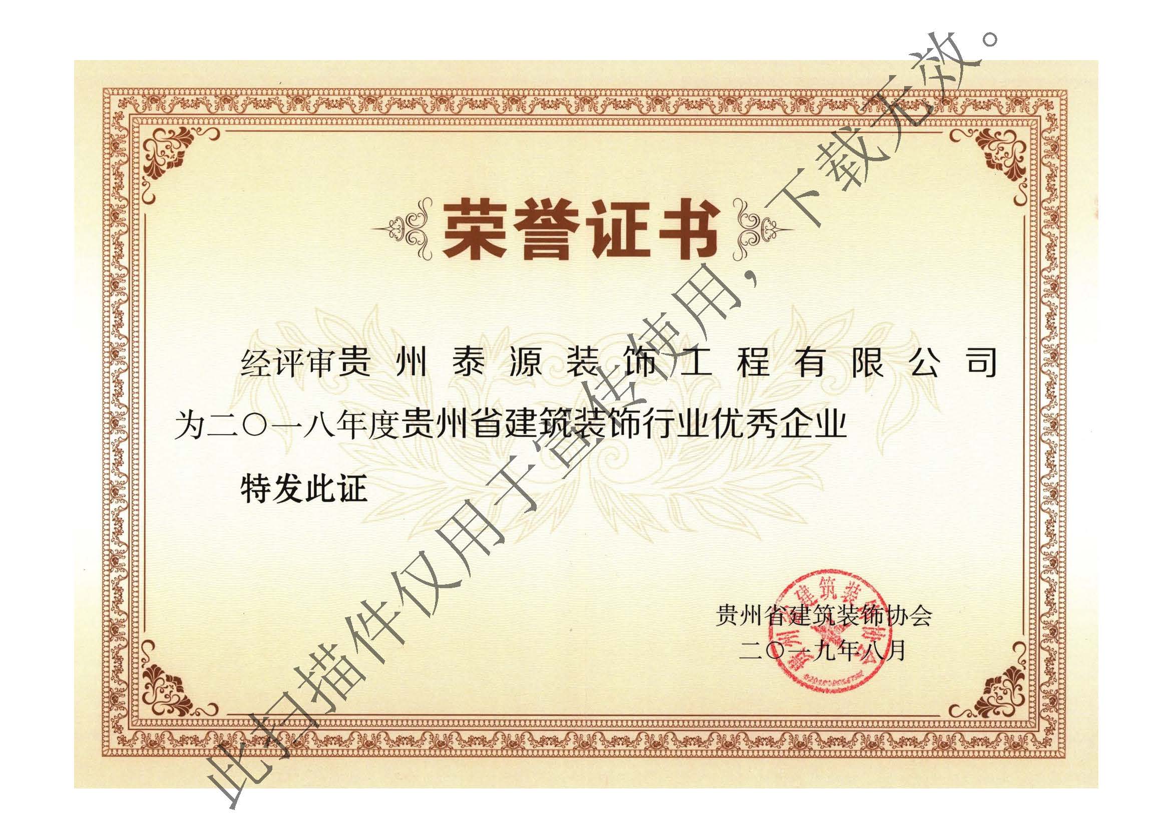 名 稱:貴州省建設(shè)裝飾行業(yè)優(yōu)秀企業(yè)2018年